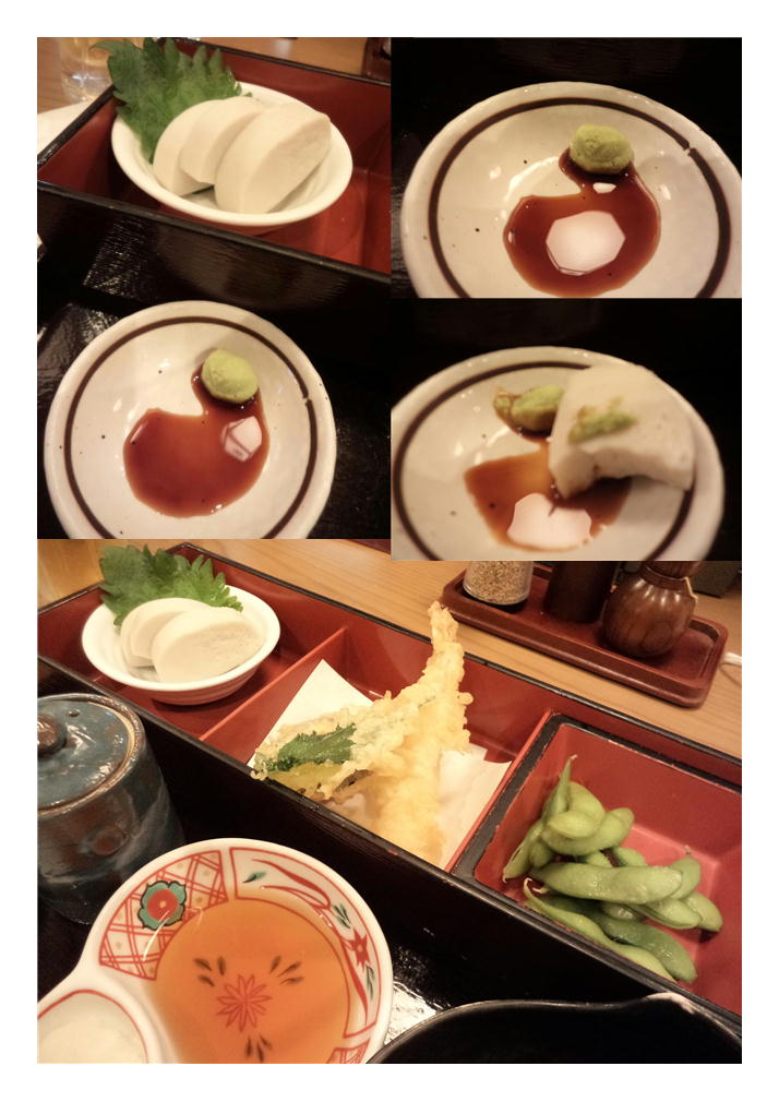 天麩羅は、野菜中心の4種。海老・大葉・イカ・茄子となっていた。盛り合わせというのは、寂しい大きさの天麩羅だった。板わさの醤油・山葵、天麩羅の天つゆ・大根おろしは、ありがたいセット。まあ十分であった。